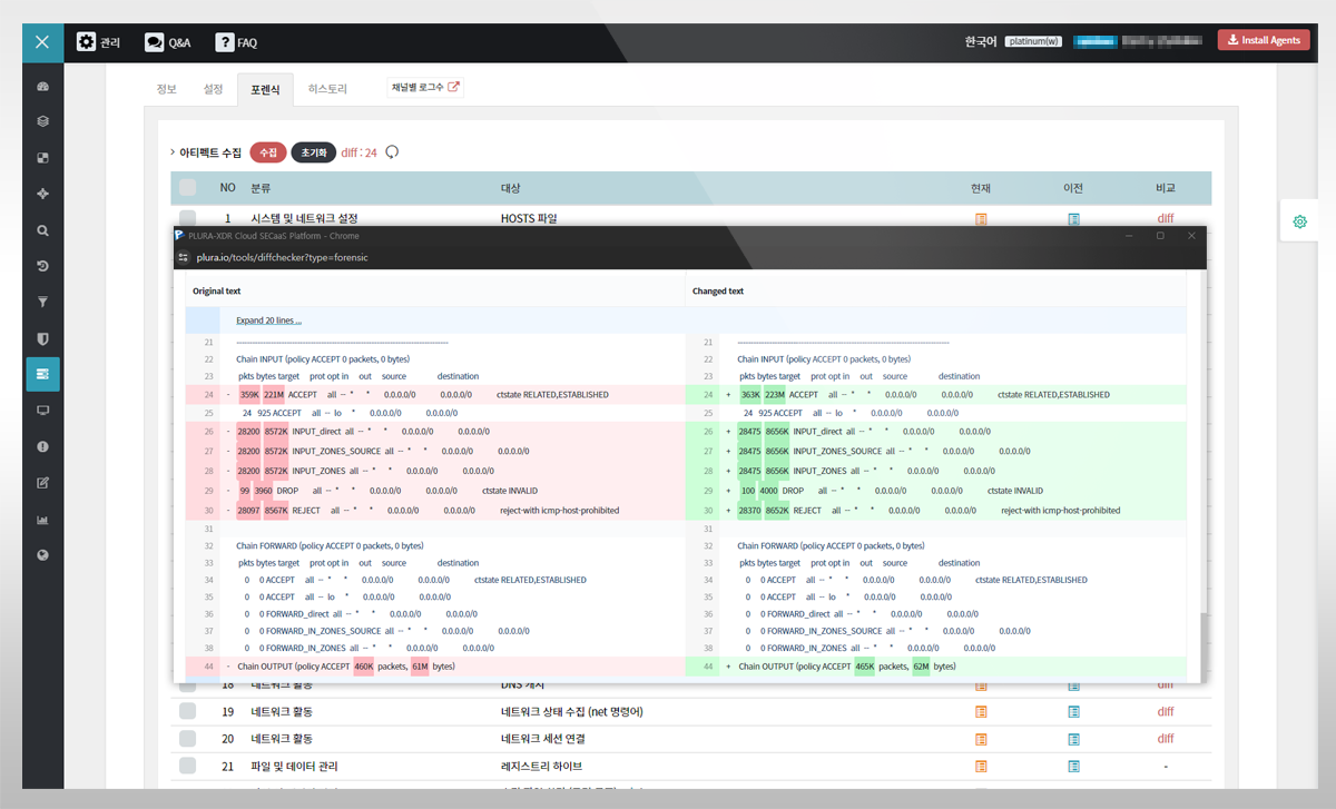 최초와 현재 스냅샷 자동 비교 관리 (diff)